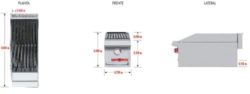 reversible de hierro fundido, área útil de: frente: 0.290 m, fondo: 0.540 m.