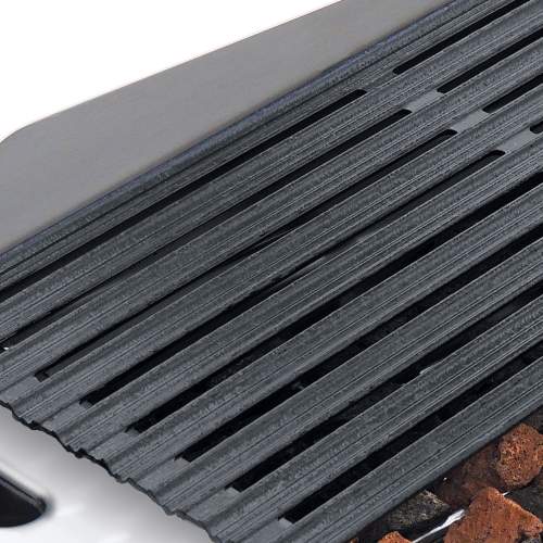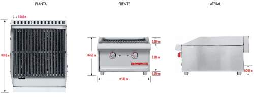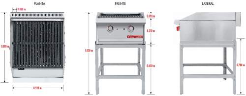 Asador con cuerpo fabricado de acero inoxidable, con partes en fundición de hierro, piedra volcánica incluida, el equipo perfecto para complementar tu linea con un asador de baja a mediana producción y rápido termino