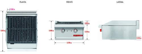 reversibles de hierro fundido, área útil de: frente: 0.290 m, fondo: 0.540 m