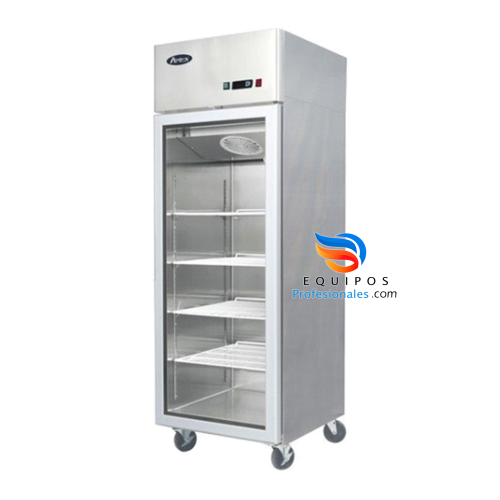 Congelador Vertical con 1 puerta de Cristal en Acero Inoxidable