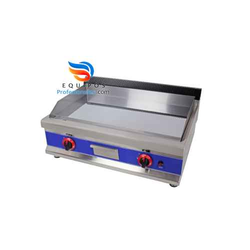 Fabricado en acero inoxidable, plancha en placa de acero de ½”, encendido electrónico por chispa, con 2 quemadores, válvula de ajuste para gas l.p. o gas natural, cajón recolector de grasa. Medidas: 800 x 610 x 340 mm