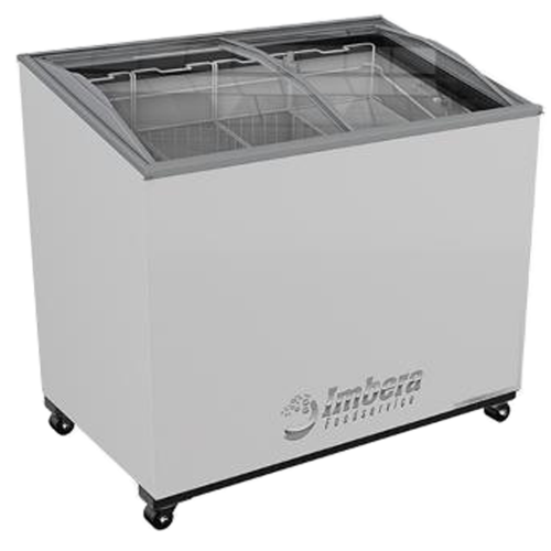 congelador de exhibicion con dos puertas en cristal curvo de 10 pies cubicos de capacidad ideal para demostracion de productos congelados,como paletas, nieves y helados y productos procesados y empacados al vacio