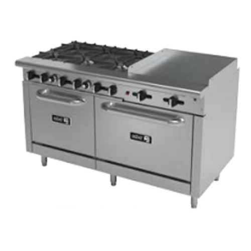 Estufa combinada Asber AEMR-2-G24-B6-60-H 6 Quemadores, Plancha con 2 Hornos