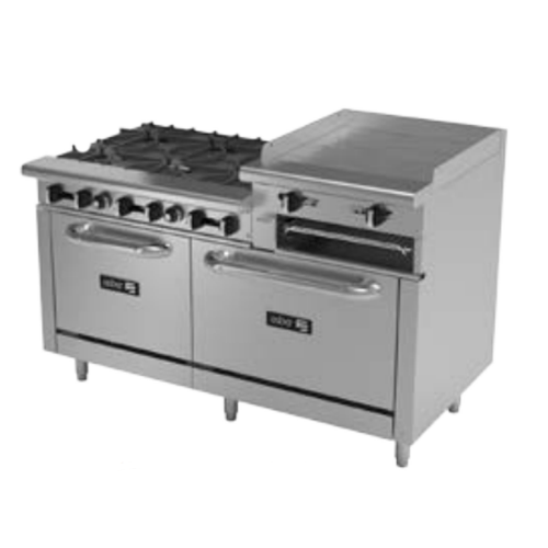 Estufa combinada Asber AEMR-2-RG24-B6-60-H 6 Quemadores, Plancha con 2 Hornos