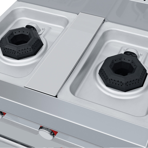• 2 quemadores abiertos octagonales con tapa desmontable