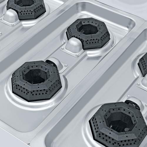 6 quemadores abiertos octagonales con tapa desmontable en hierro