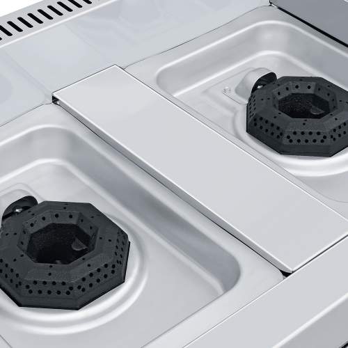 • 2 quemadores abiertos octagonales con tapa desmontable