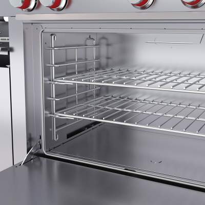 • Horno grande con medida interior de: frente: 0.660 m, fondo: 0.345 m,