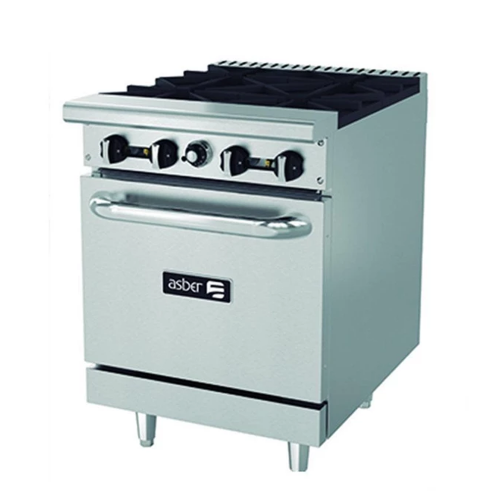 Estufa a Gas Asber AER-4-24 4 Quemadores y Horno en Acero Inoxidable