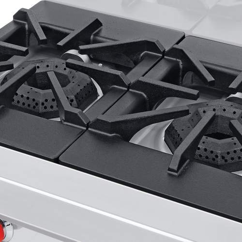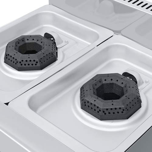 quemadores y 2 parrillas superiores montadas sobre cubierta semi-sellada