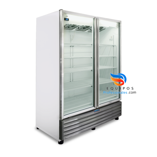 Refrigerador vertical de dos puertas con marco de aluminio anodizado, con 8 parrillas con altura ajustable y una de piso, capacidad de 43 pies cúbicos