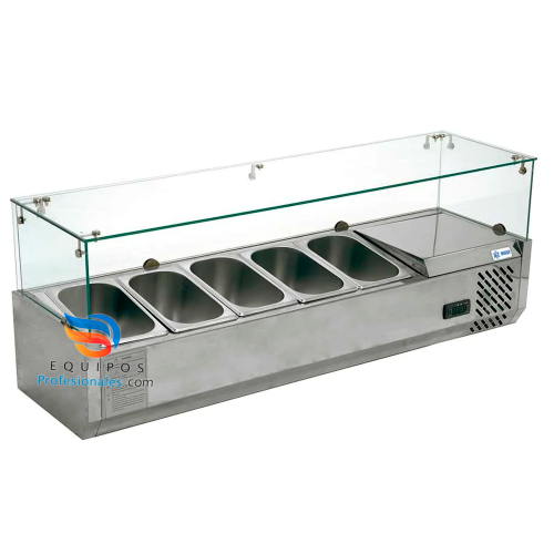 Vitrina sobre mostrador refrigerada Migsa RT-1200L ideal para espacios de exhibición pequeños ideal para ensaladas y pizzas