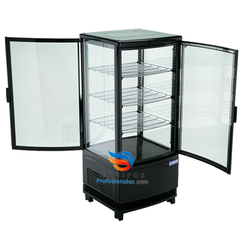 La mejor exhibición panorámica con doble puerta ideal para una selección de productos como postres, pasteles,bebidas y alimentos embotellados y procesados,con doble puerta